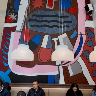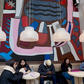 The mural was designed by Shannon Peel, our Creative Director, whose inspiration from a recent MoMA visit helped shape the design. Shannon translated that inspiration into a composition that balances abstraction, energy, and calm.