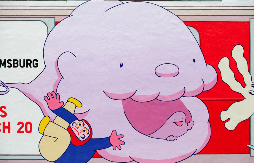 For the opening of Uniqlo’s new Williamsburg store, Japanese artist Hiroshi Masuda created this mural illustration announcing the launch.
