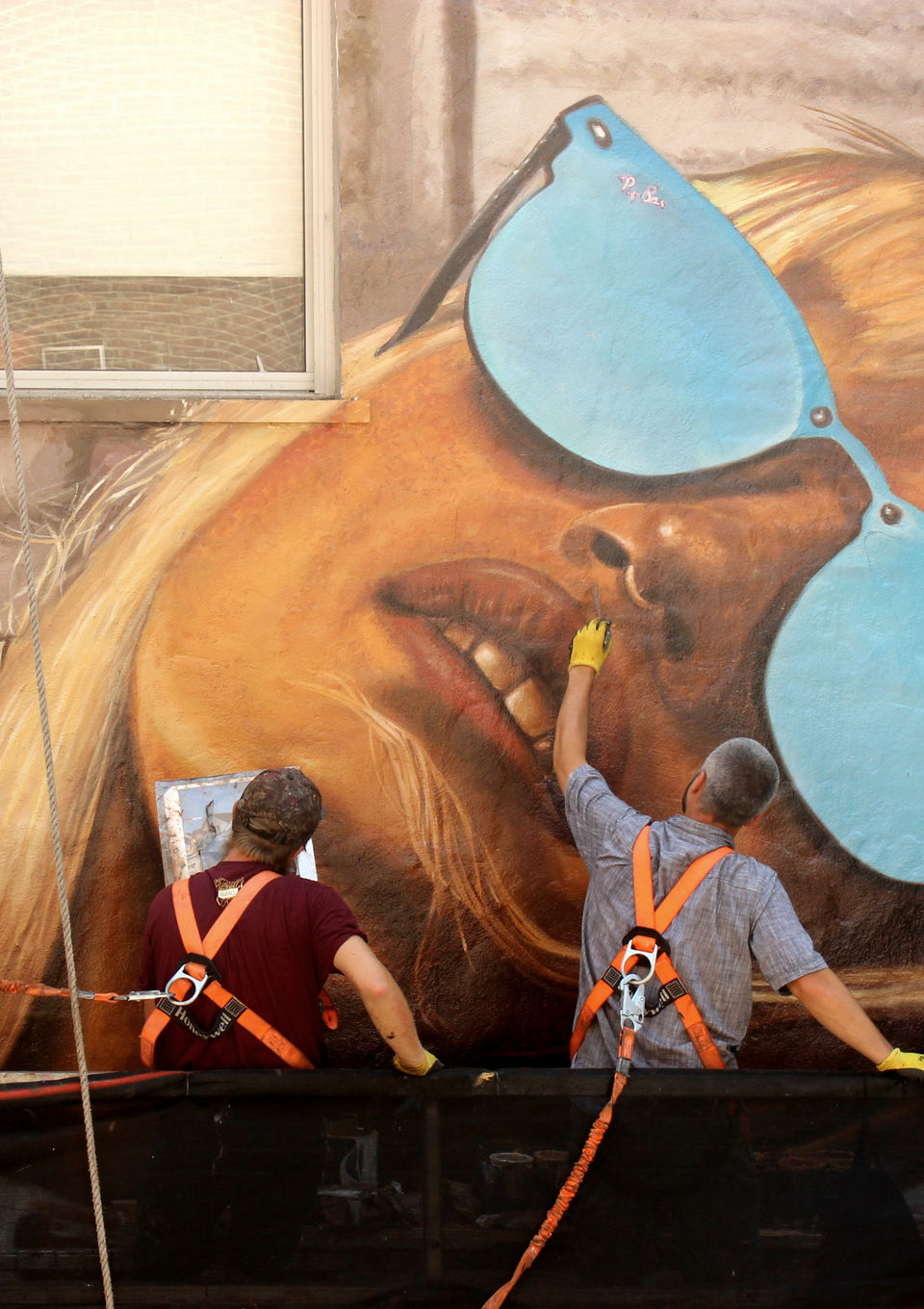 Iconic eyewear, Ray-Ban part of Luxottica, is known for their rich photographic advertising campaigns and their latest summer campaign, celebrating their 80th anniversary, was no different. The OM crew hand painted the popular classic sunnies' creative across walls in SoHo and Brooklyn. A Ray-Ban wearer is unique and doesn't look back in the past. These trendy New York neighborhoods were ideal settings for the campaign's intent of promoting what the brand represents: individualism and authenticity, whilst rallying peopl to free themselves from society's pressures and norms. The bright neon colors within the original images, taken by well known photographer Steven Klein, bounced off the glossy painted brick and stucco surfaces.